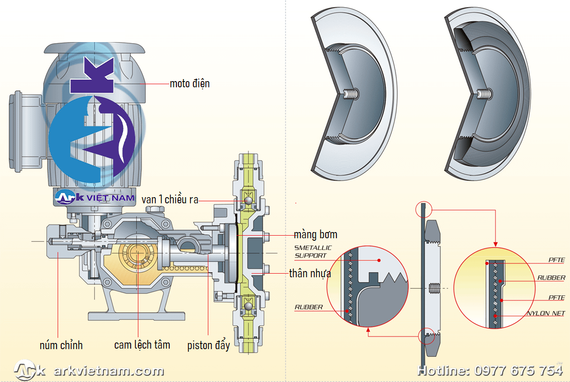 Trong đó, ARK Việt Nam đang sản xuất và phân phối Bơm định lượng màng, loại bơm hàng đầu theo công nghệ Hàn Quốc.