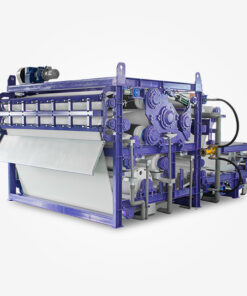 Máy ép bùn băng tải là sản phẩm sử dụng áp lực ép của các rulo lên băng tải để ép bùn. Bùn được ép thành các bản mỏng, độ ẩm thấp và nhanh khô. Các thành phần chính của máy bao gồm đai băng tải, các rulo ép bùn giữa các đai.